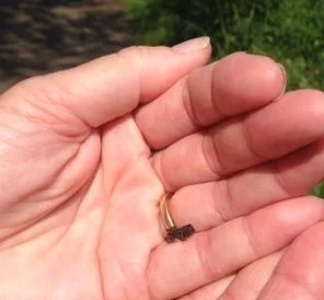 A tiny toad on a walk in the woods.